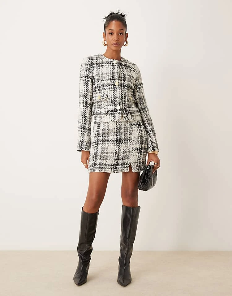 New Look Boucle Mini Skirt Co-ord In White Check