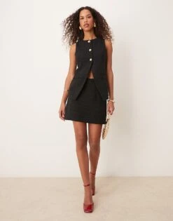 New Look Boucle Waistcoat & Mini Skirt Co-ord In Black