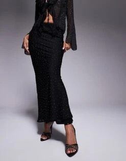 New Look Embellished Blouse & Skirt Co-ord In Black