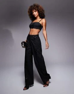 New Look Pinstripe Sequin Trouser Co-ord In Black
